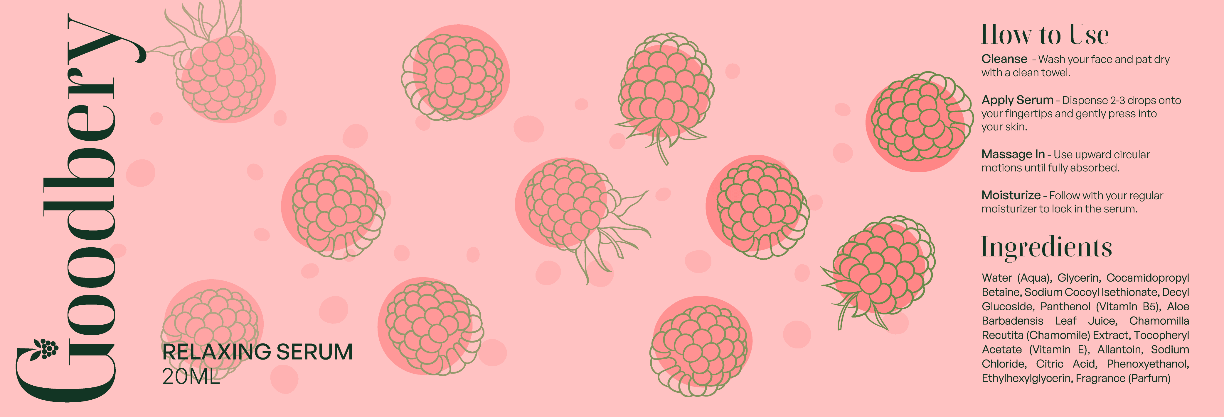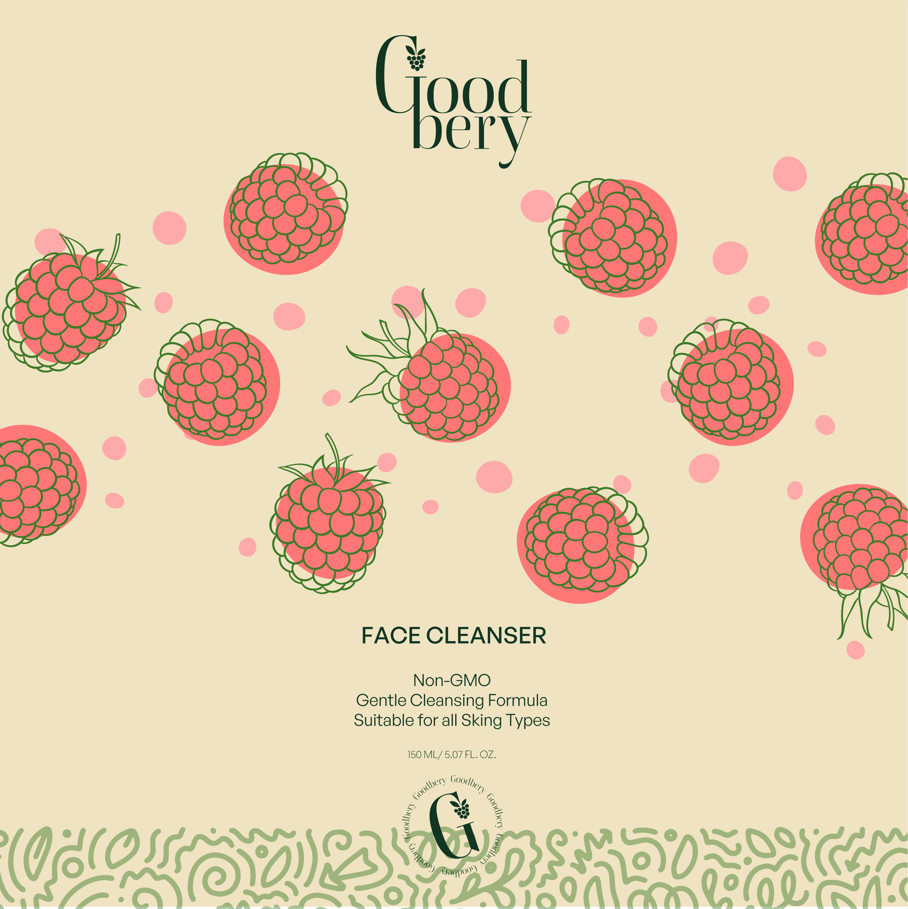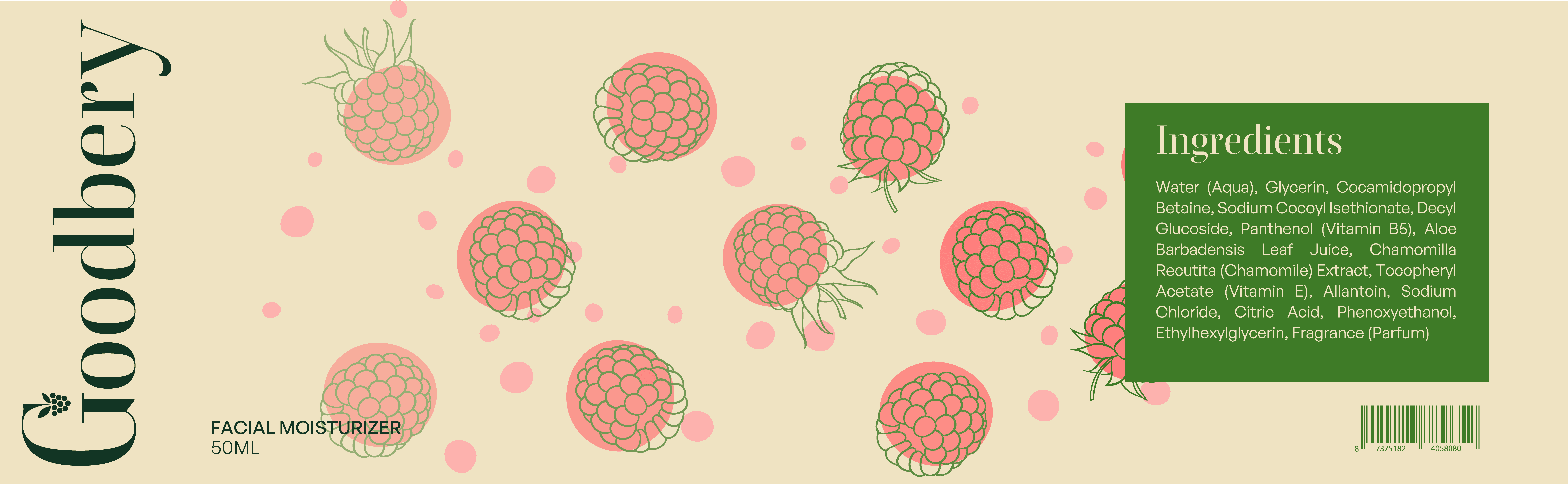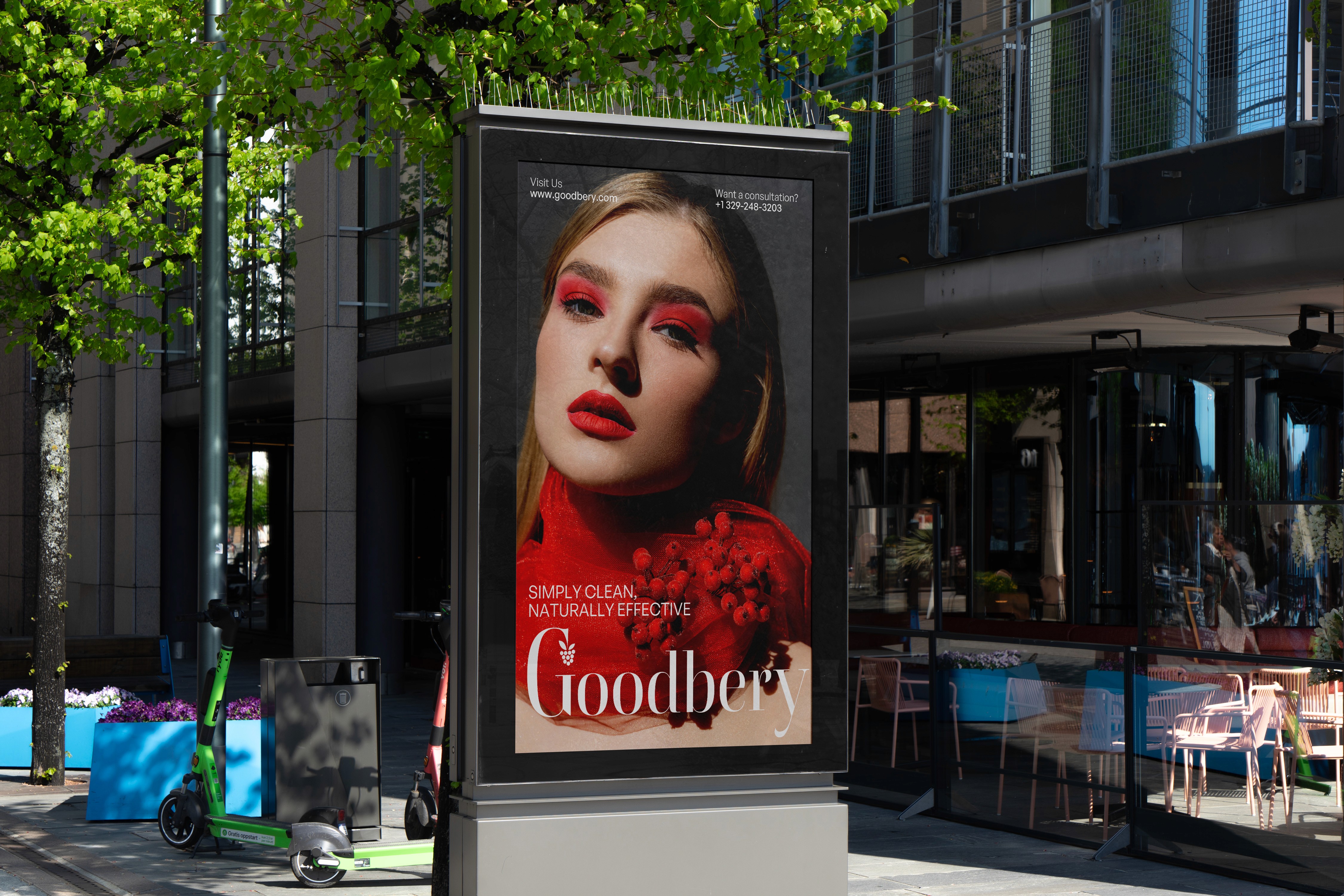 Goodbery is a conceptual packaging design exploring how natural beauty brands can communicate purity and transparency through visual design. This self-initiated project developed a complete packaging system—from product containers to label design—that balances organic aesthetics with modern, clean presentation.